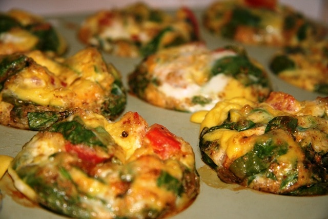 How to? Take eggs, add salt and pepper, some cream and whisk. Heat butter in a pan and add chopped onions, spinach, tomatoes and some basil leaves. Now add salt and pepper to taste. Take a mould and put the vegetable mix in them and top it with whisked egg mixture. Bake for 5-6 minutes at 170-180 degrees. Breakfast’s ready!