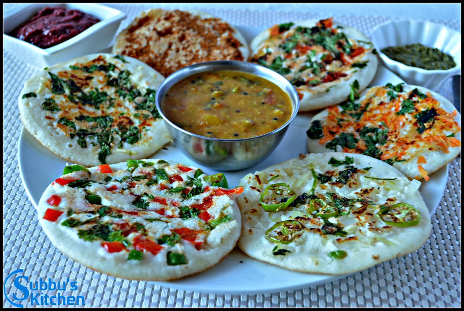 Another appam to further extend the list of appams is Uthappam. This is fervor towards any south Indian dish. How? Uthappam has both dosa and idli in it. Again how? The same dosa batter can be used to make this. After a thick layer is spread out you can simply put onions, capsicums, tomatoes, and even cheese, paneer to North Indianofy it. Then tilt is back and forth on your non stick (the battleground for making correct, plain dosas). Your choice of toppings, your choice of Uthappam. ( You can sprinkle some oregano to have a pizza feel!)